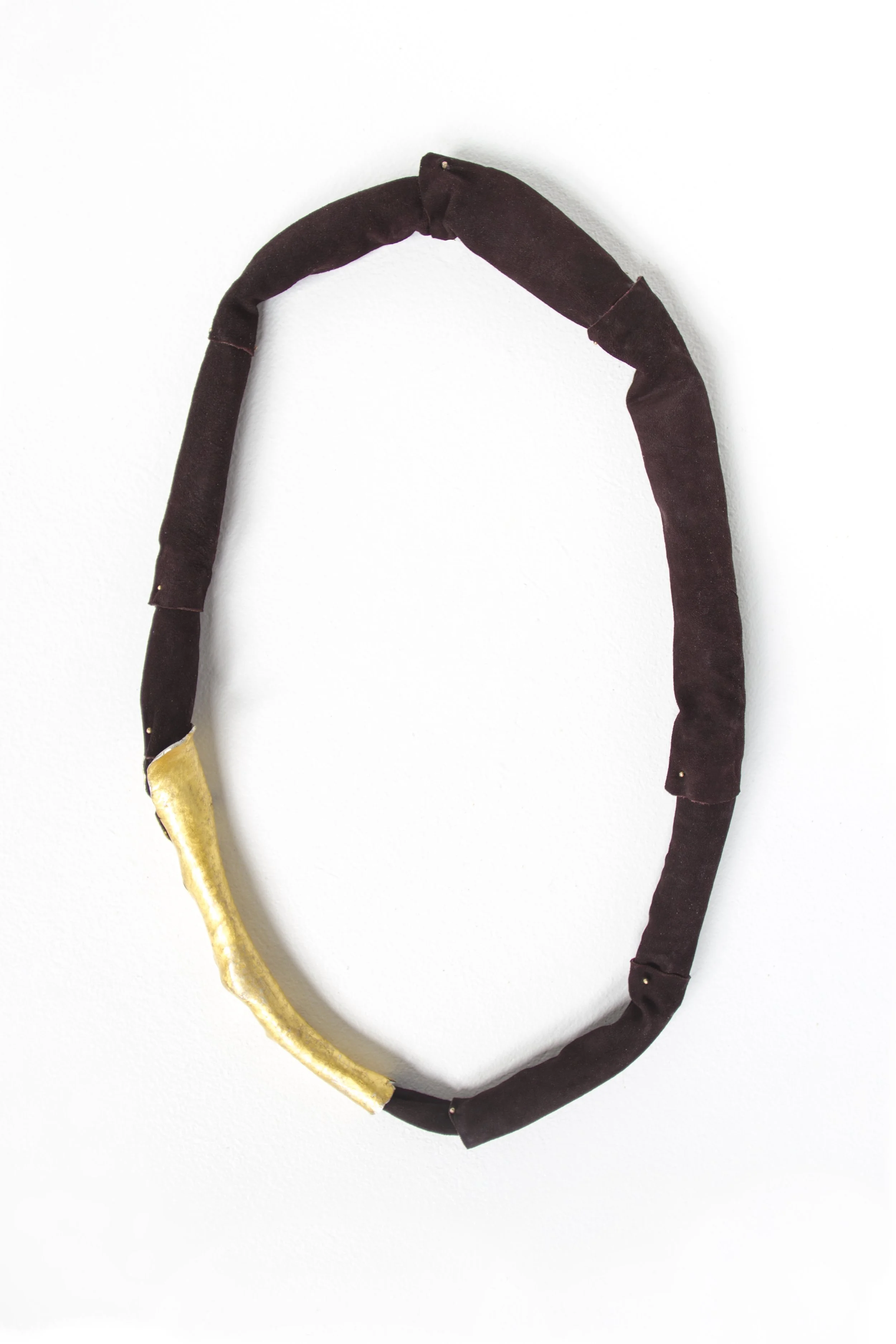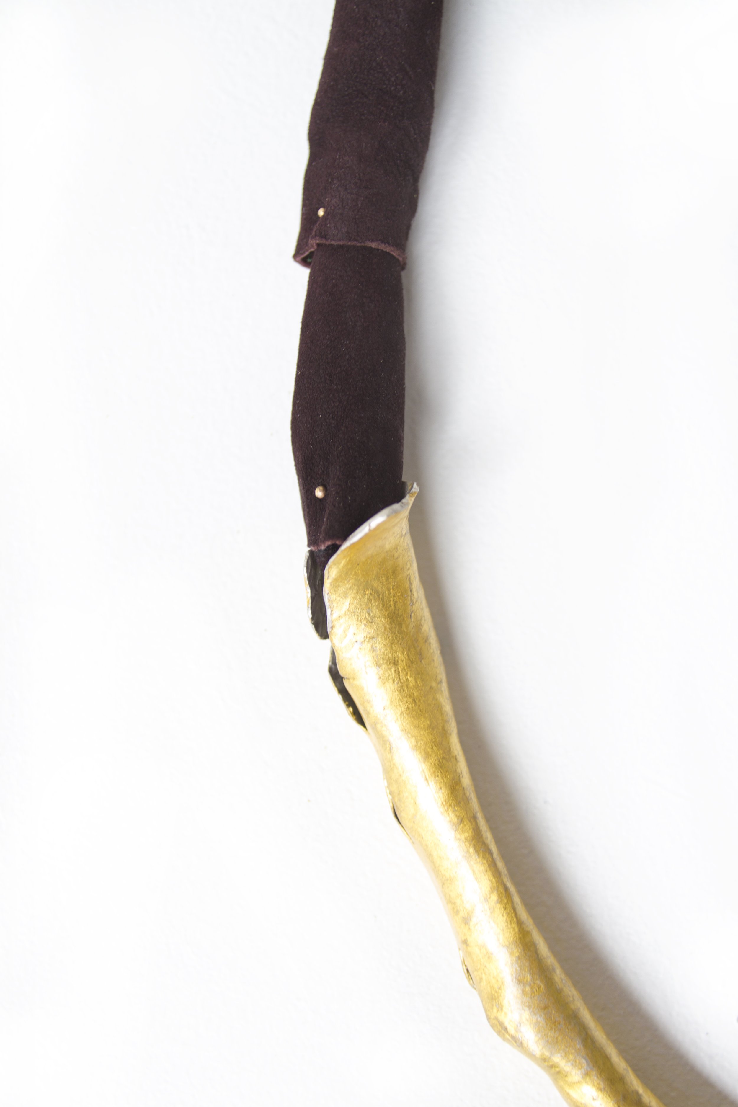 suede, hand forged sterling silver, 24k gold leaf, 14k gold rivets
