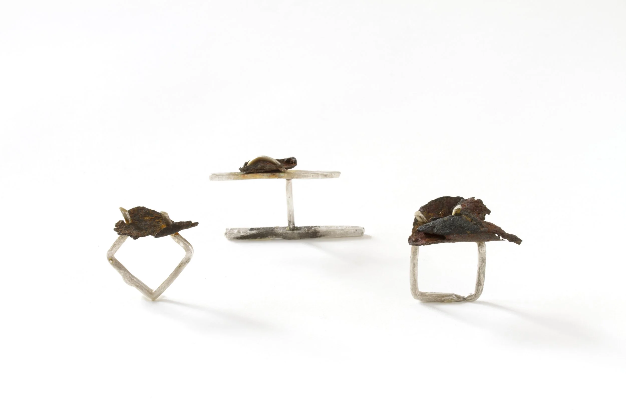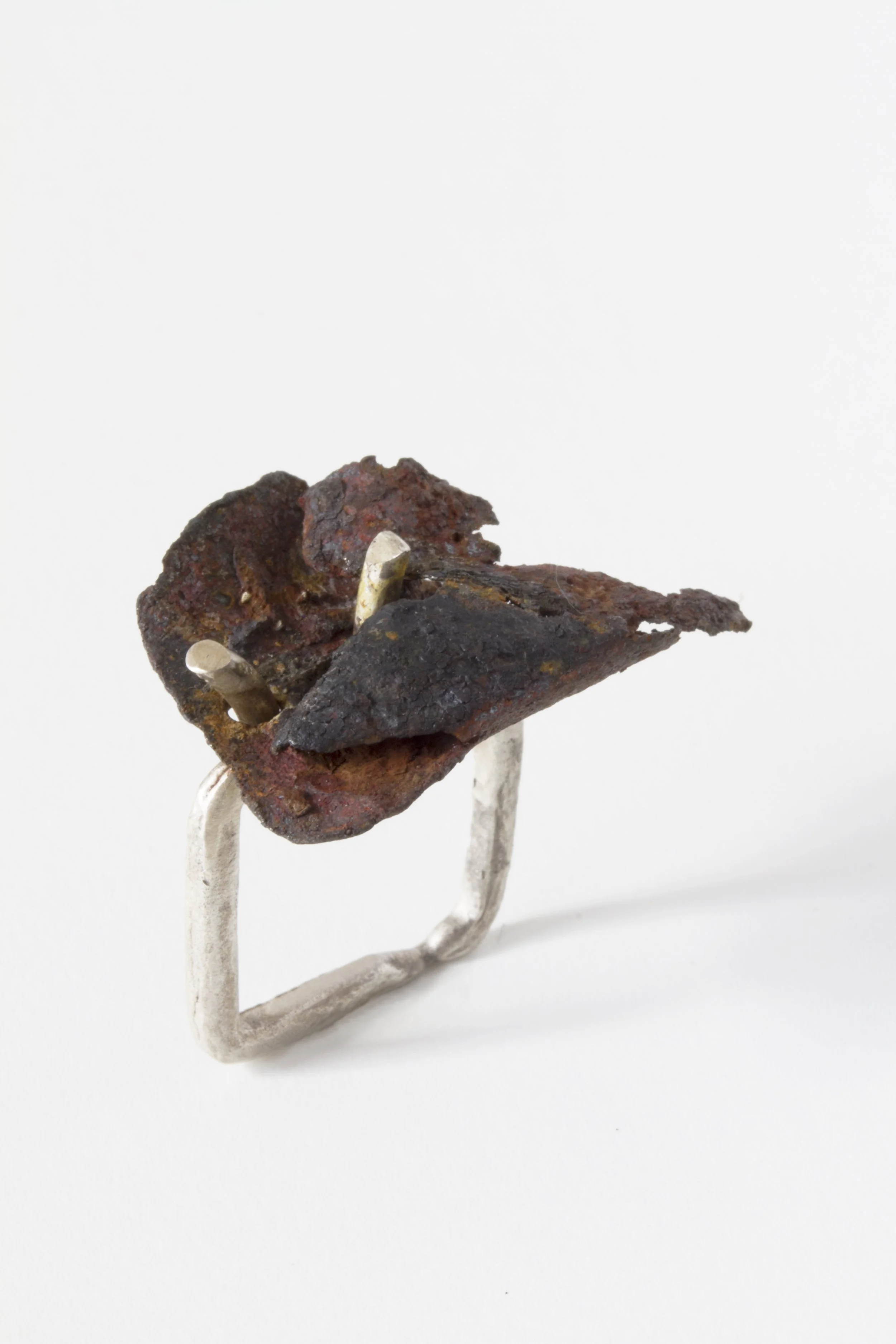sterling silver, rusted steel